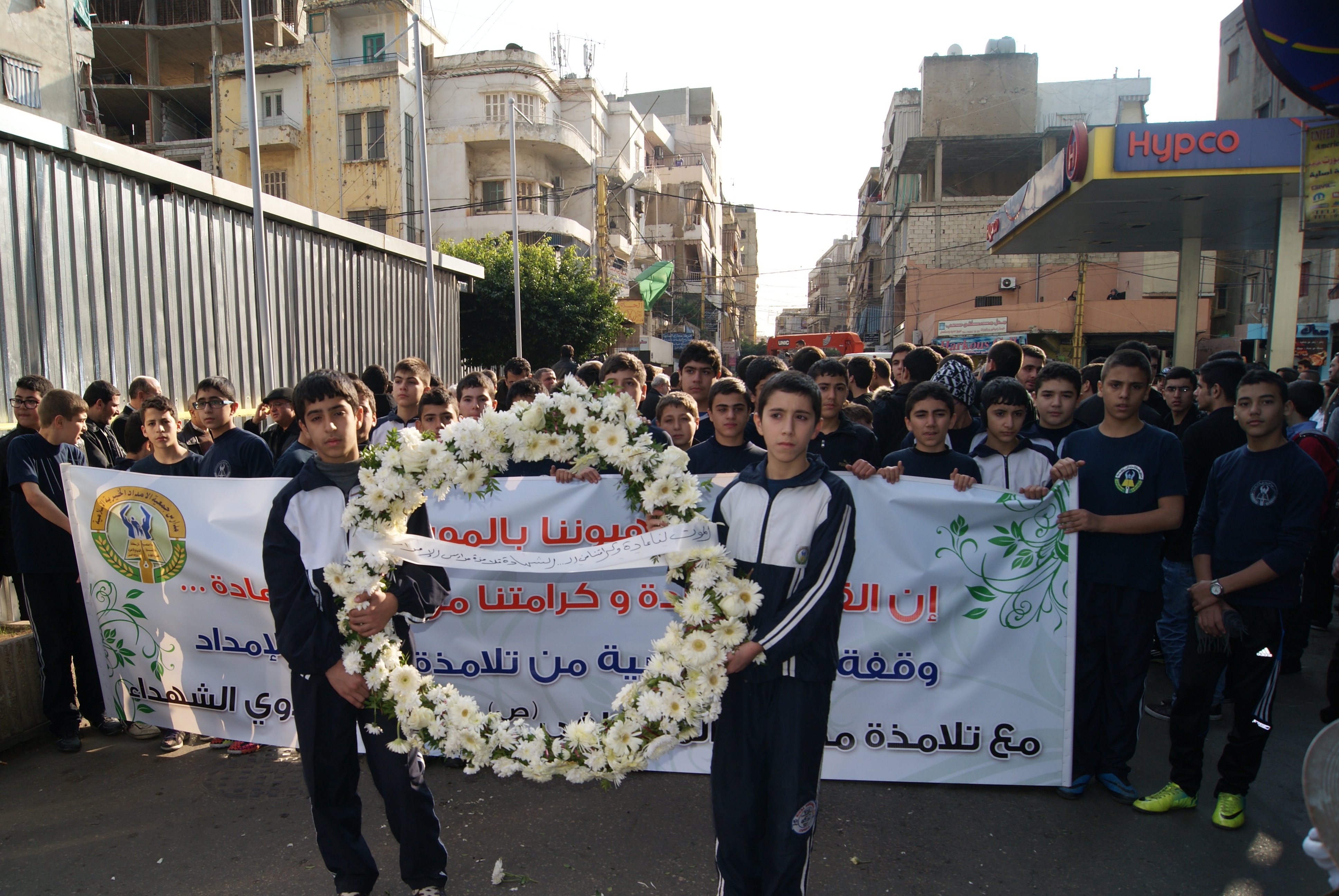 إستنكاراً للتفجير الإرهابي الآثم الذي استهدف الأبرياء في الضاحية الجنوبية، وتكريماً لزملائهم الشهداء قام وفد طلابي من ثانوية الإمام الخميني (قده) برفقة الهيئة التعليمية بزياره موقع التفجير في حارة حريك و علقوا لوحة تندد بالعمل الإرهابي الجبان ؛ كما قدم الوفد برفقة مدير عام جمعية الإمداد الحاج محمد برجاوي واجب العزاء لرفاقهم في مدرستي الكوثر والمصطفى (صلى الله عليه وآله) ولذوي الشهداء المظلومين ملاك زهوي وعلي خضرة، وختموا جولتهم بوضع إكليل من الورد على أضرحة الشهيدين.